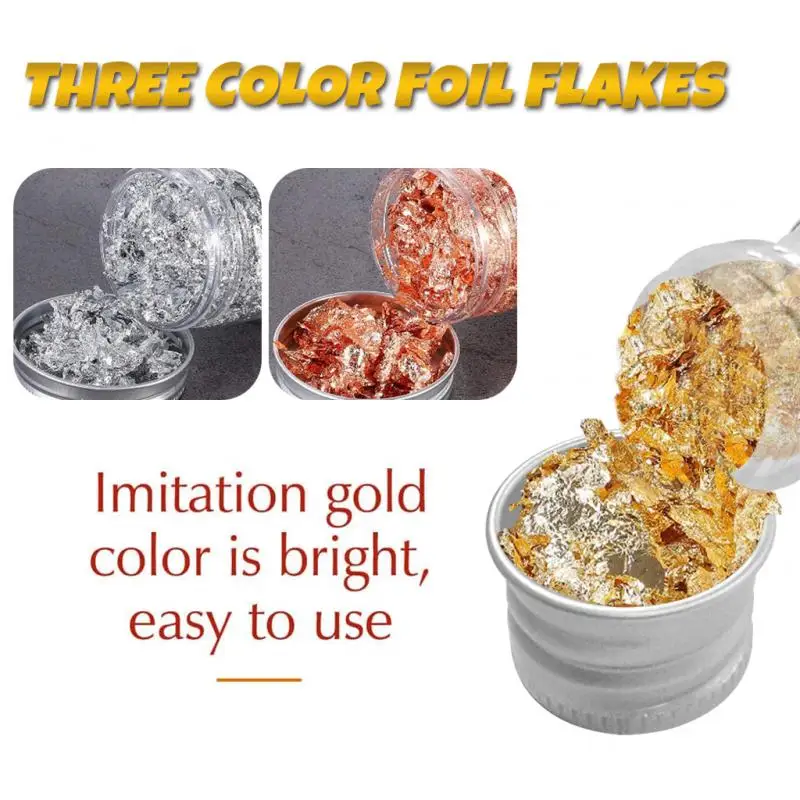 3. Яркие цвета-поставляются с золотыми, серебряными и медными цветами, хлопья из золотой фольги не легко выцветают и окисляются, они могут создать потрясающий Блестящий текстурированный эффект, чтобы ваши поделки выглядели особенными.