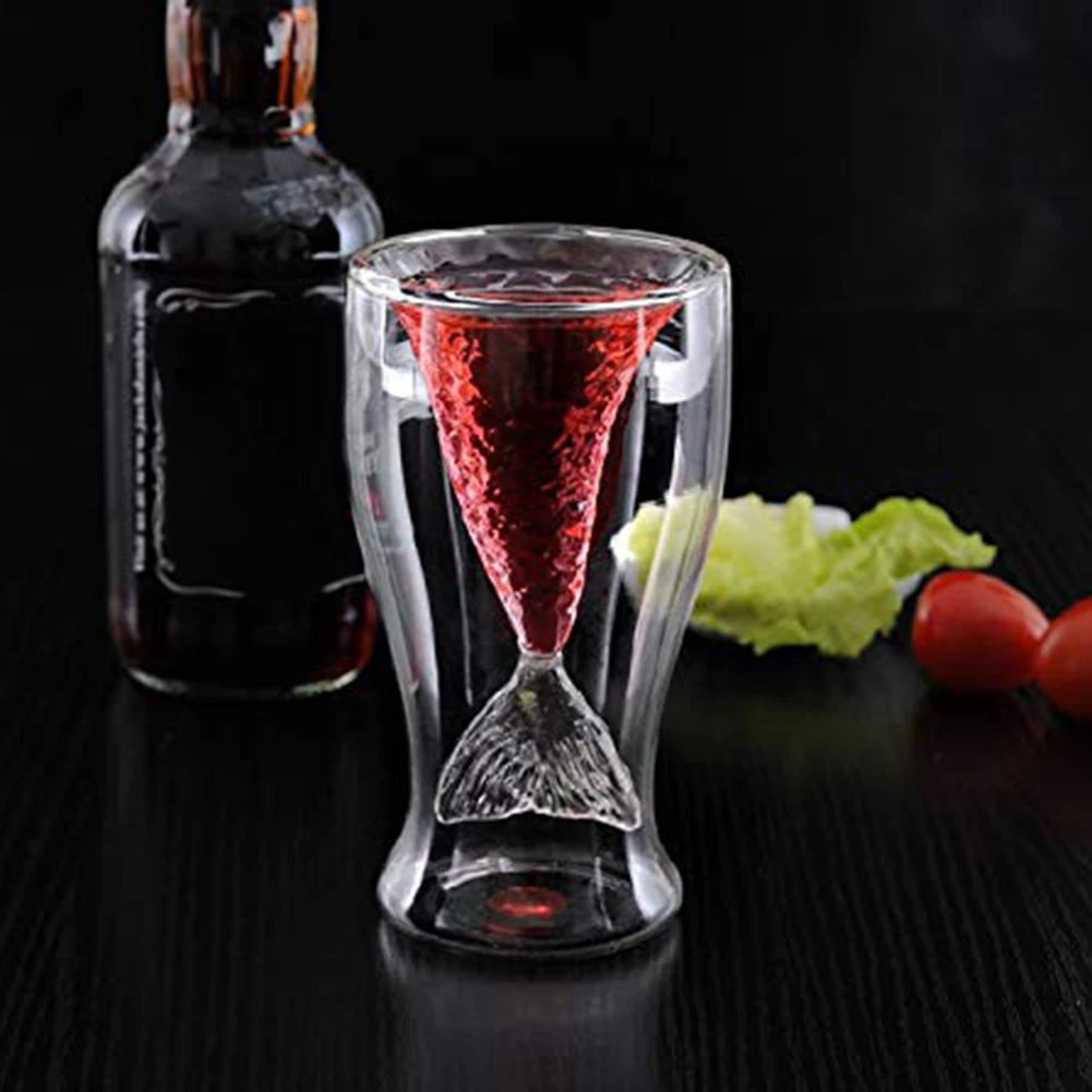 80 мл креативный бокал русалки es рыбий хвост винный бокал двухслойный Пиво Виски Коктейль кружка Русалка для смешной рюмки стеклянная кружка чашка