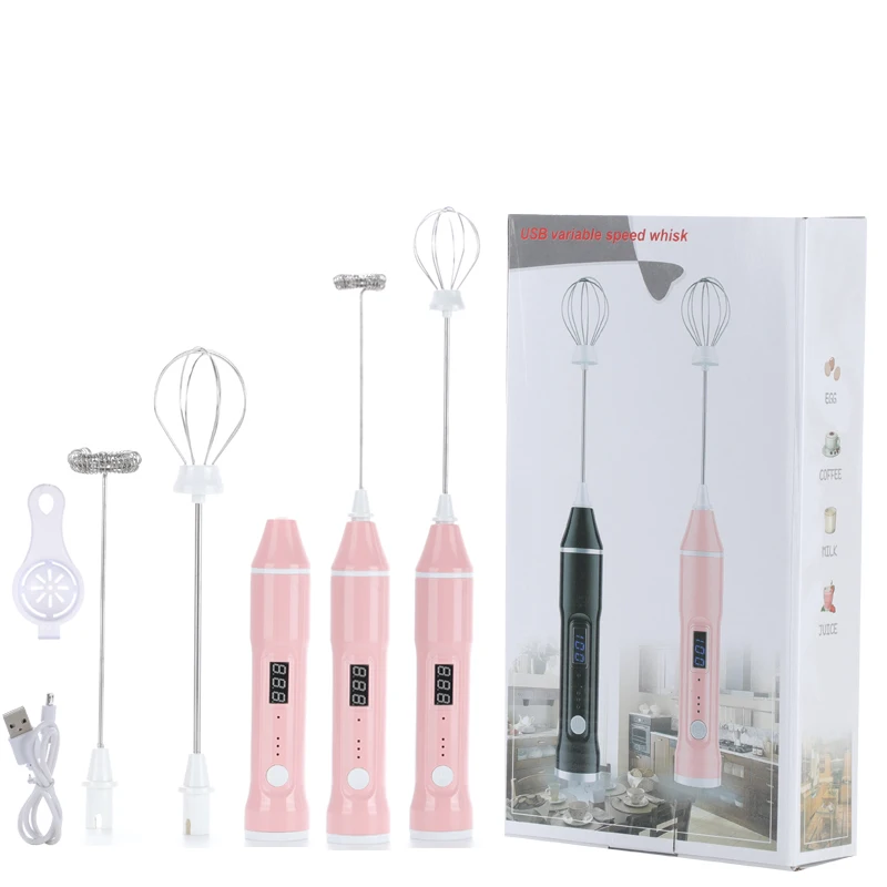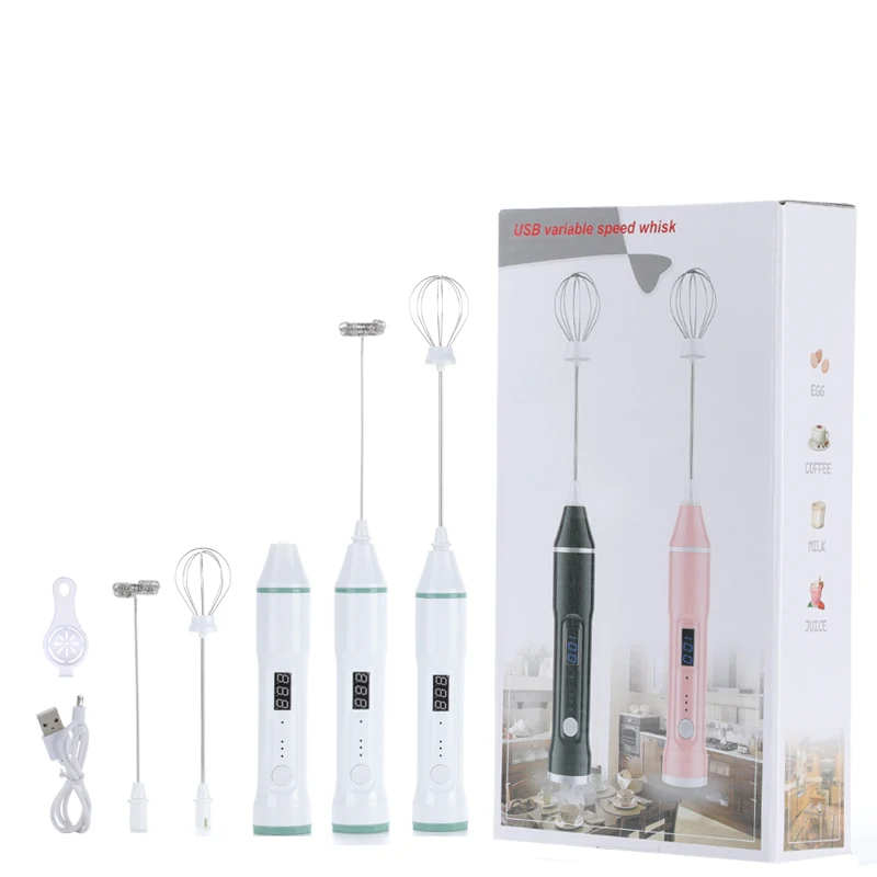 Standard Package Included:1 x Body1 x Egg Whisk Head1 x Milk Frother Head1 x USB Charging Cable(Not Include Power Adapter)LCD Product Description:Color: black/pink/whiteSize: 220g/ 24.5*13.5*4.8cmLCD Features:Three gear adjustment, LCD, USB charging, Mute, Stainless steel material, 8 wire mixing headLCD Package Included:1 x Body2 x Mixing head1 x USB cable1 x Chinese and English manual1 x Packing boxNotes:1. Please allowed 1-3mm differences due to manual measurement, thank you!2. Due to the difference between different monitors, please understand that the picture may not reflect the actual color of the item.