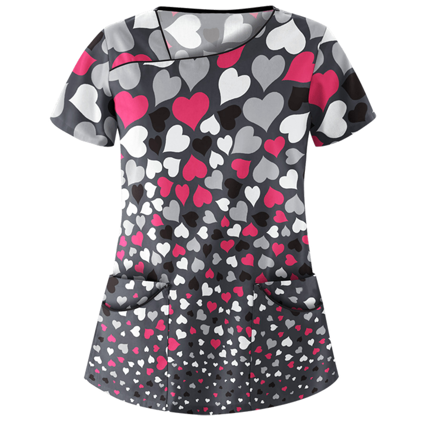 Женские топы с v-образным вырезом и коротким рукавом, рубашка с карманом, Рабочая Униформа, блузка