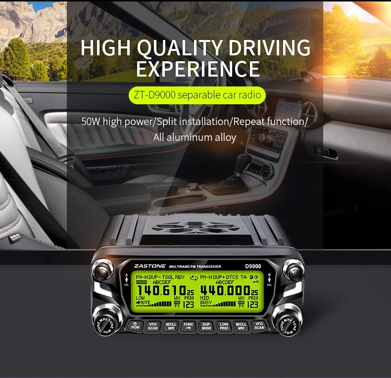 ZASTONE Mobile Transceiver Automotive Radio Station D9000 Quad Band 144/430MHz 50W Walkie Talkie woki toki 2-Tone/5-Tone