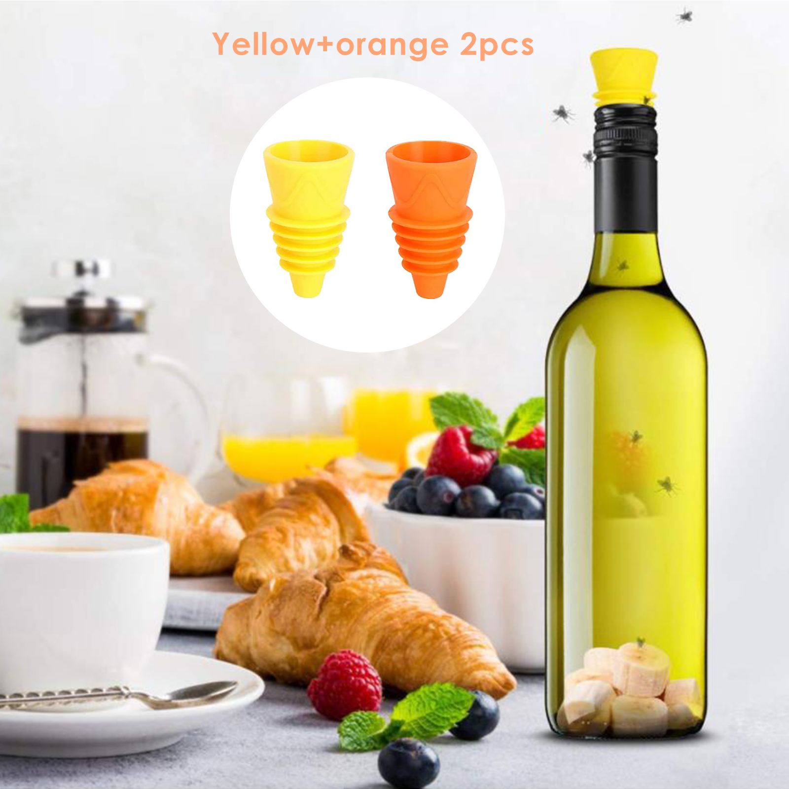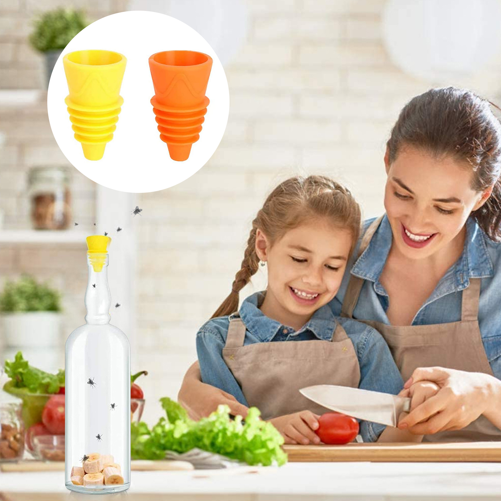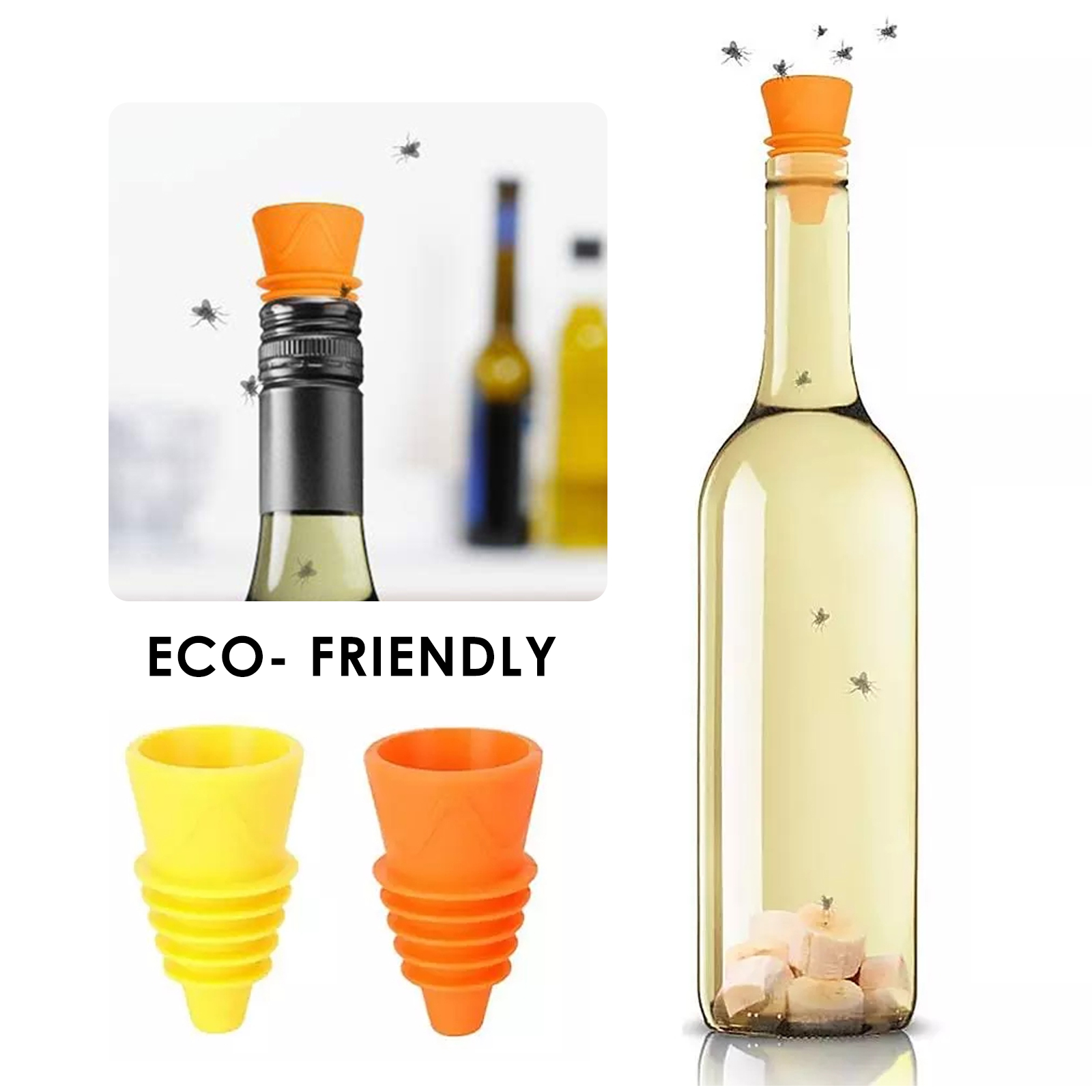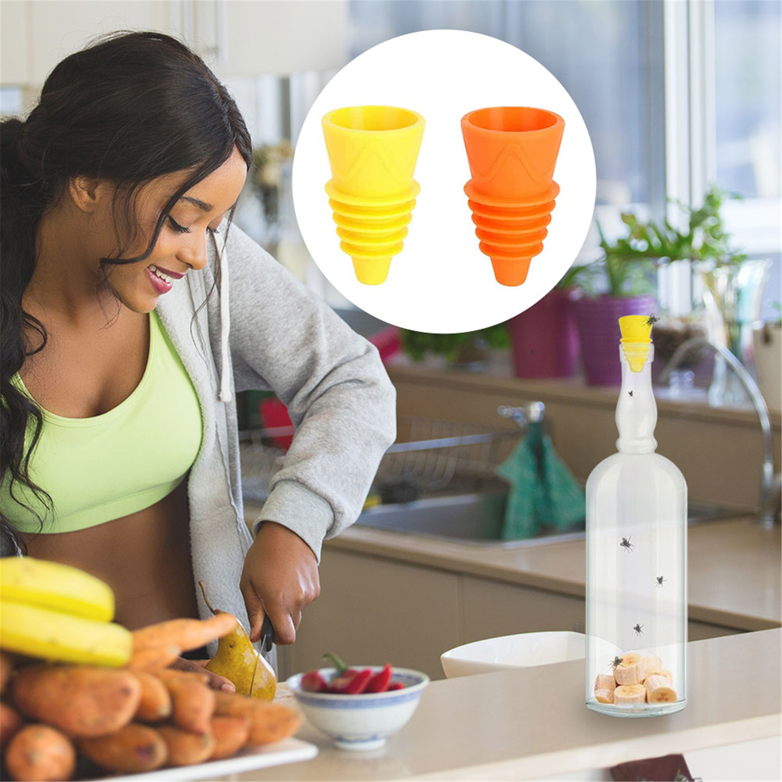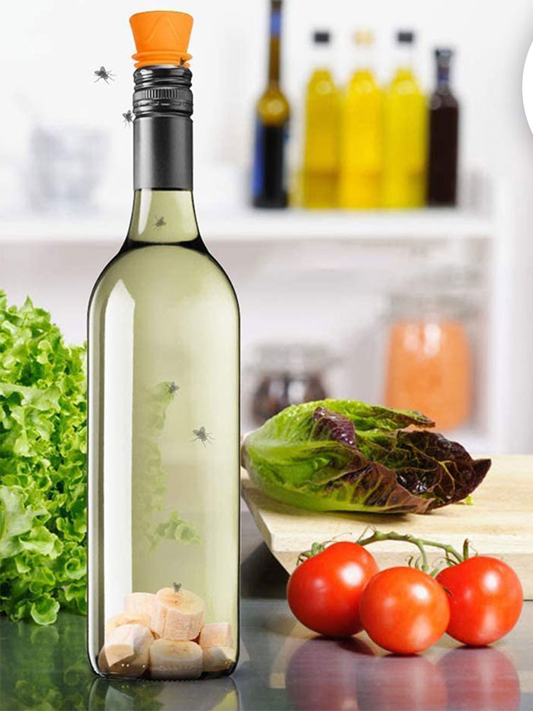 1. Ловушка для фруктовых мух, уксусных мух. Ловушка для фруктов не содержит инсектицидов и работает с уксусом или яблочным соком и моющим средством в качестве приманки для брызг. Ловушка для фруктов освобождает вашу кухню или мусорное пространство от этих надоедливых мух.