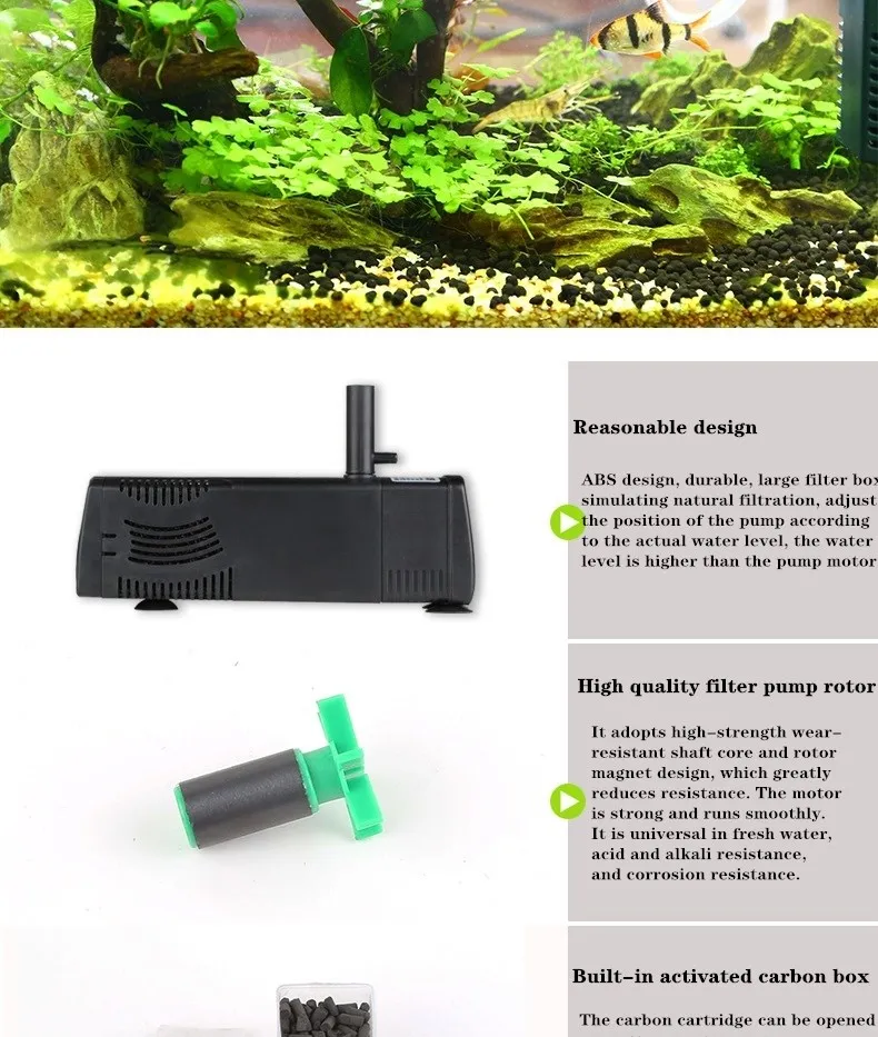 It is designed with a sponge filter,it can filtrate and purify the water,it can keep the fish tank water clean and decrease the algae growing.