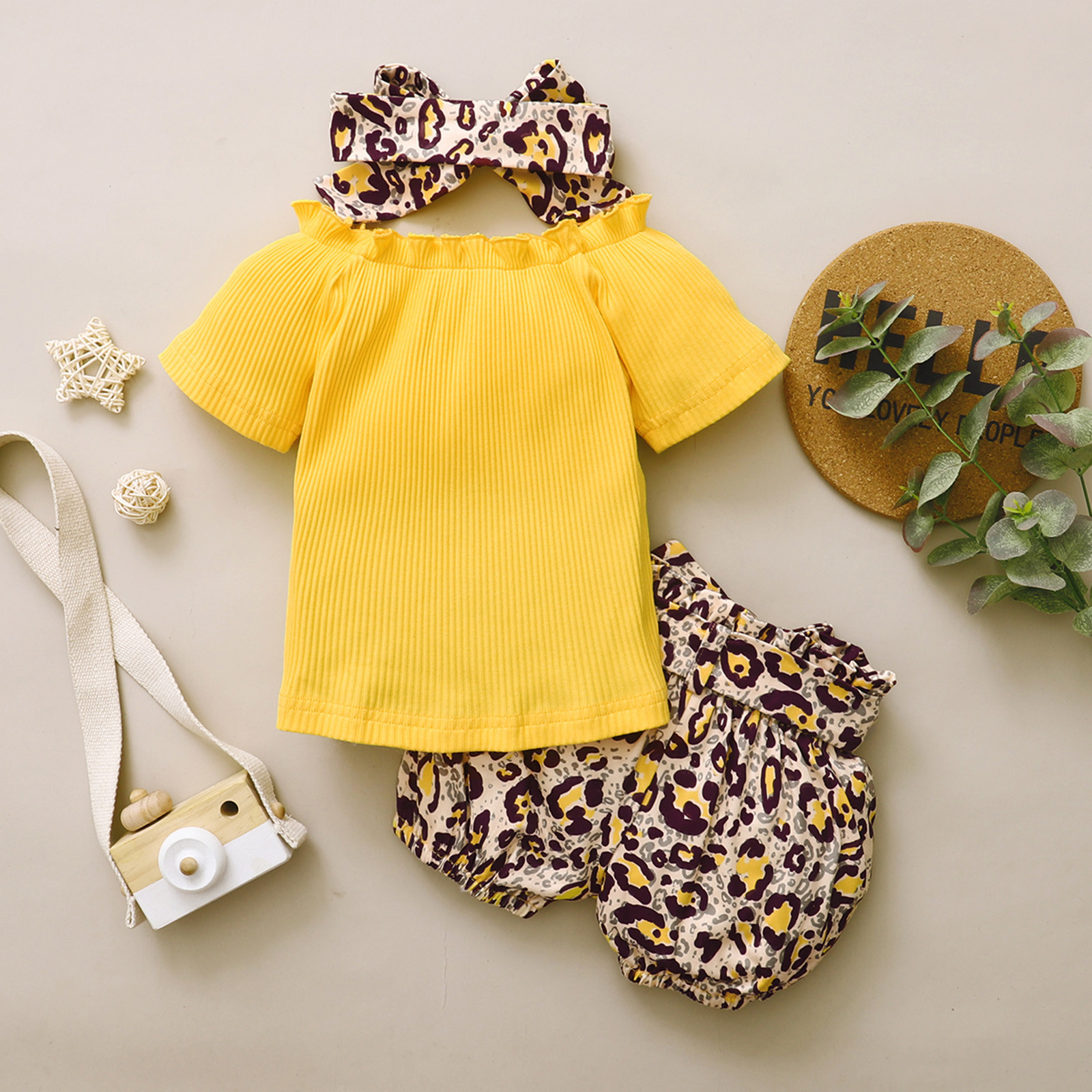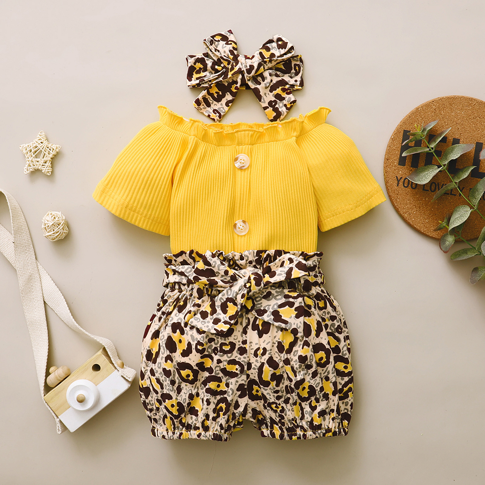 Комплект одежды из 3 предметов для маленьких девочек, одежда для маленьких девочек топы, леопардовые шорты, набор повязок, летняя одежда для маленьких девочек, Ropa