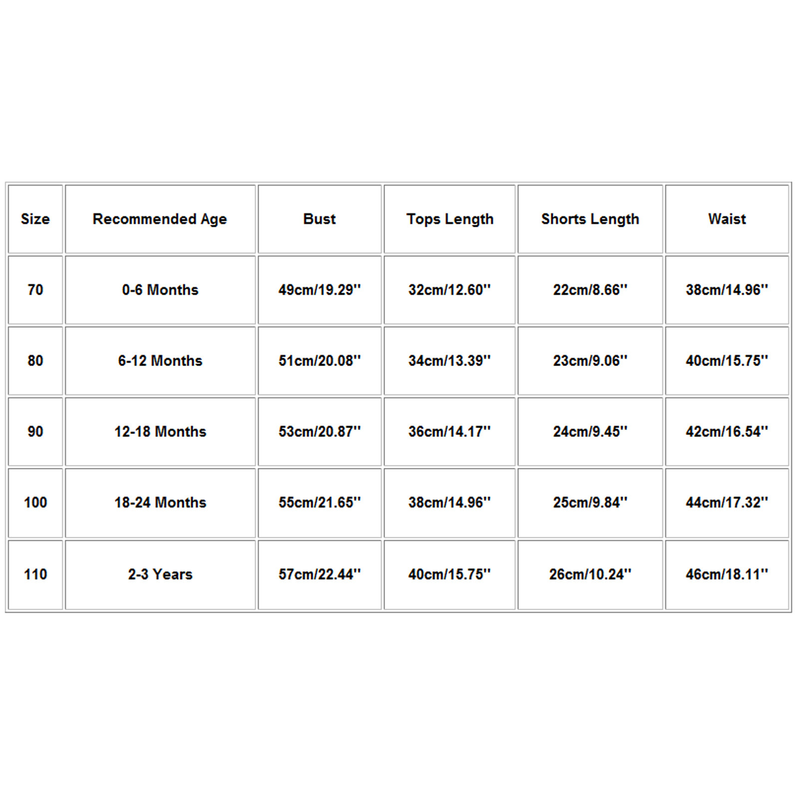Размеры Рекомендуемый возраст Бюст Длина топа Длина шорт Талия 70 0-6 месяцев 49 см/19,29'' 32 см/12,60'' 22 см/8,66'' 38 см/14,96'' 80 6-12 месяцев 51 см/20,08'' 34 см/13,39'' 23 см/9,06'' 40 см/15,75'' 90 12-18 месяцев 53 см/20,87'' 36 см/14,17'' 24 см/9,45'' 42 см/16,54'' 100 18-24 месяцев 55 см/21,65'' 38 см/14,96'' 25 см/9,84'' 44 см/17,32'' 110 От 2 до 3 лет 57 см/22,44'' 40 см/15,75'' 26 см/10,24'' 46 см/18,11''Интересная идея оформления будильника под дерево. Долго думала, ведь цена не маленькая для будильника. Взяла больше, потому что впишется в... Читать отзыв полностью...