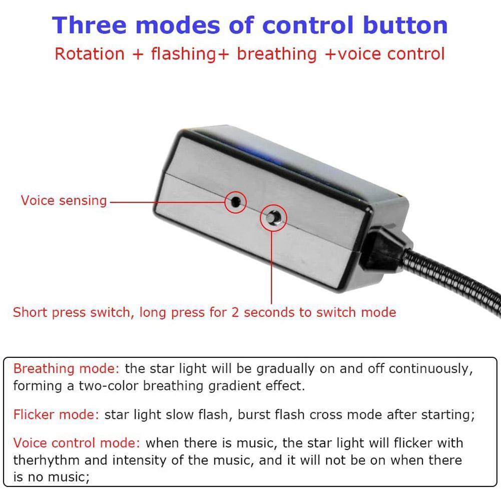 Теплый индикатор: чем дальше расстояние между ночной Светильник USB и проекционной поверхностью, тем больше проекция. Когда вы находитесь в активированном режиме звука, пожалуйста, поместите ночной Светильник USB рядом с динамиком для получения лучших результатов.