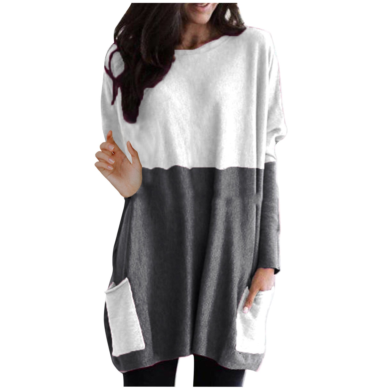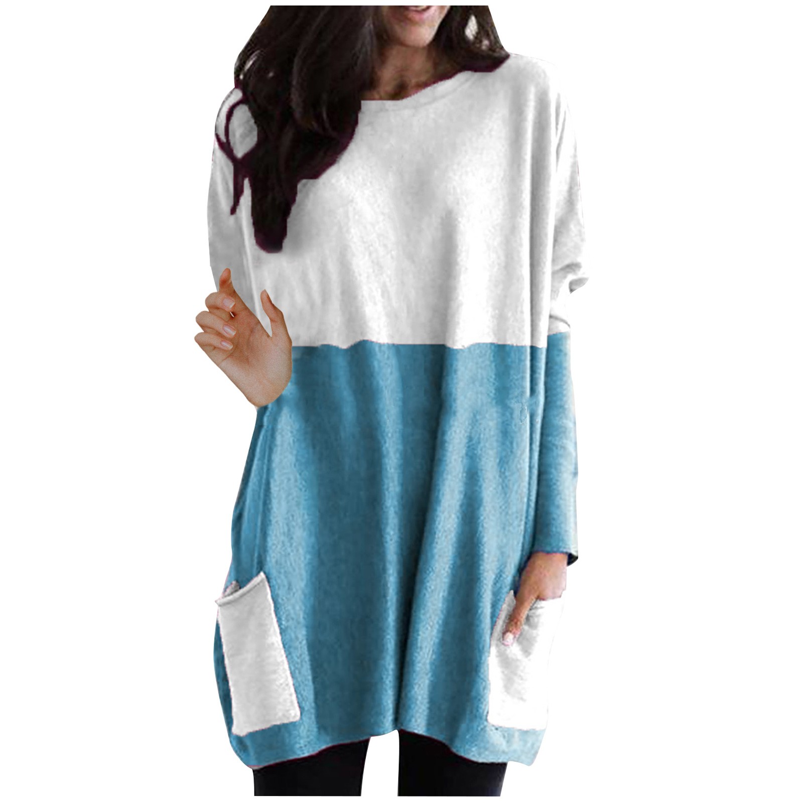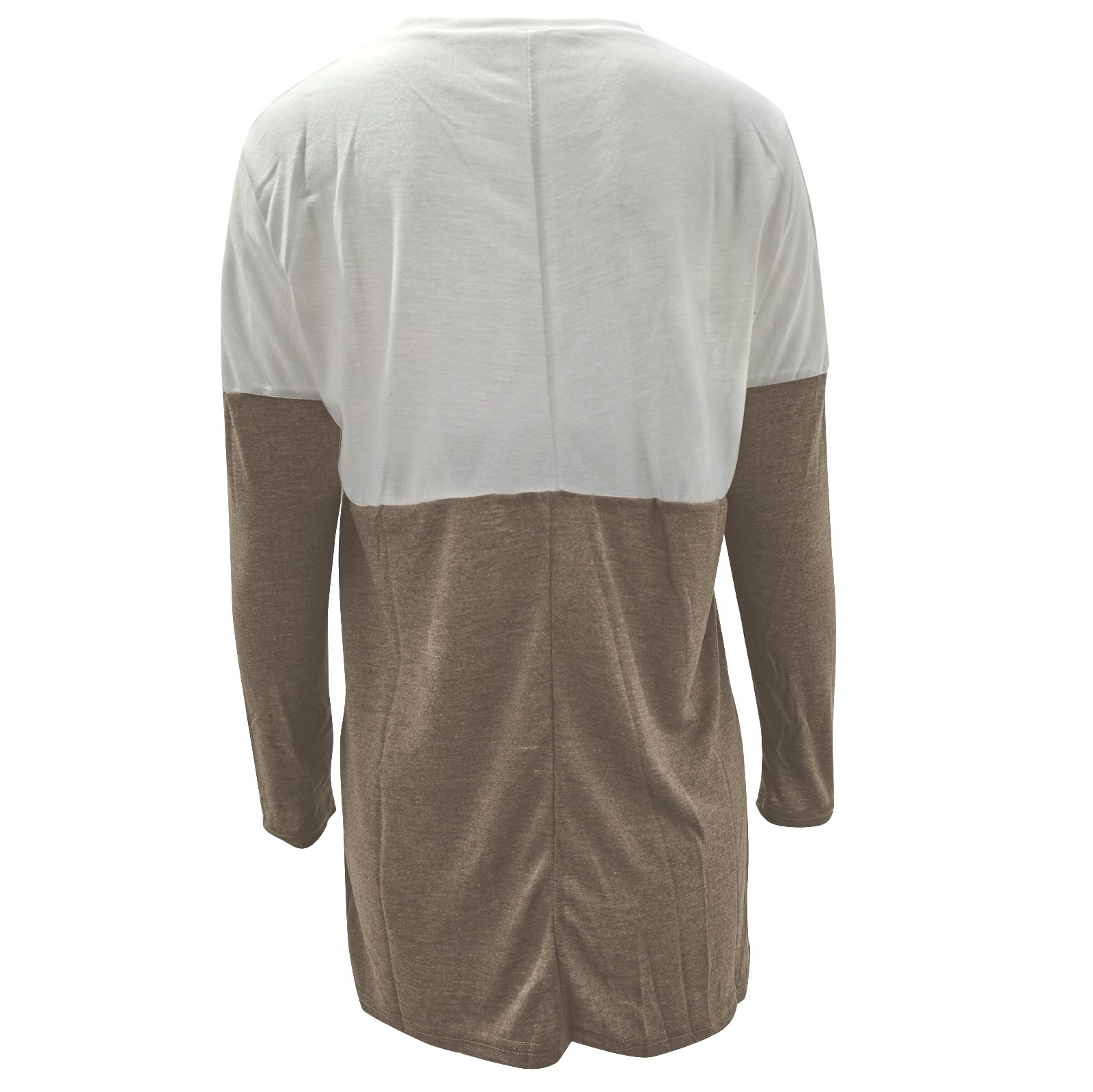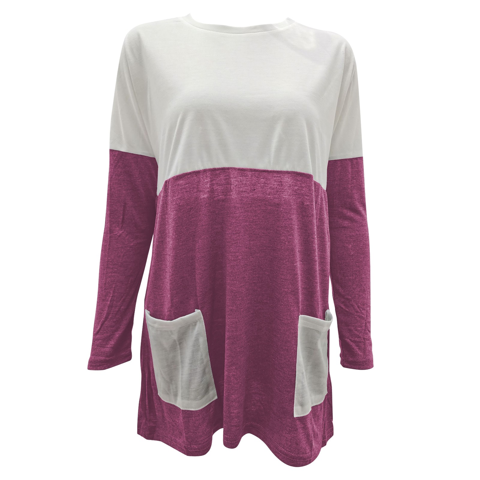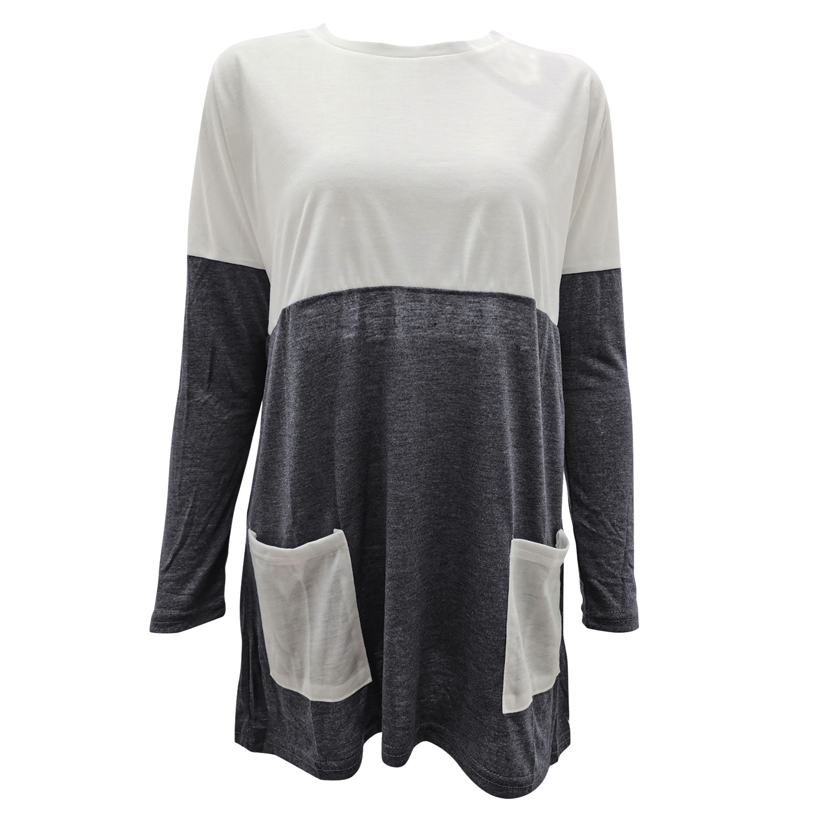 Женские модные повседневные Лоскутные свободные хлопковые топы с длинными рукавами и карманами и круглым вырезом