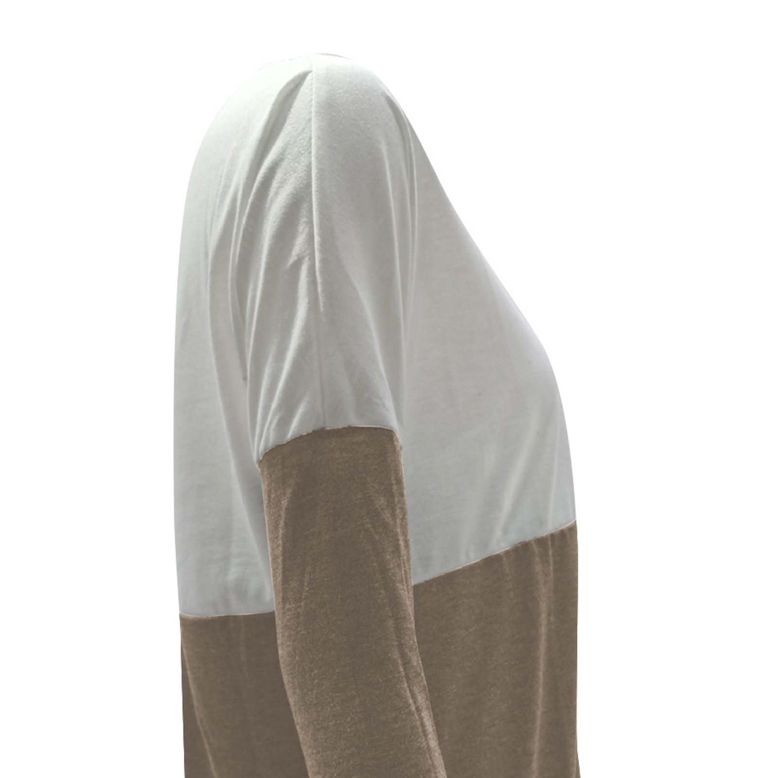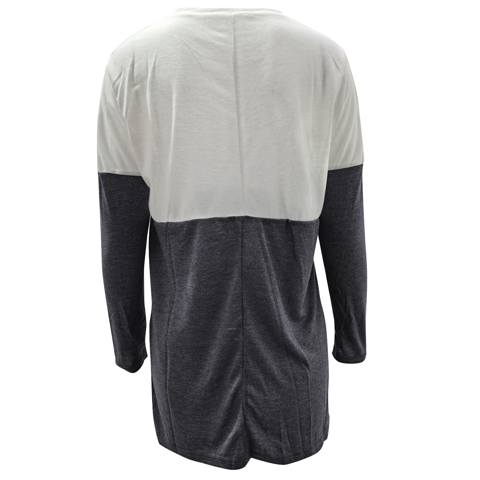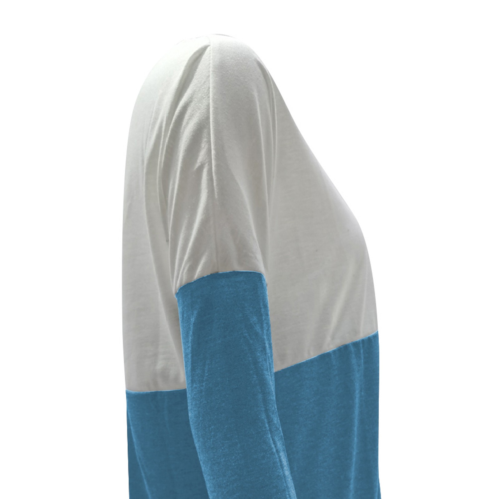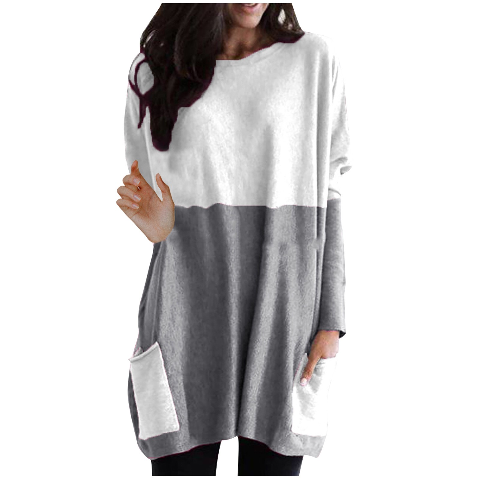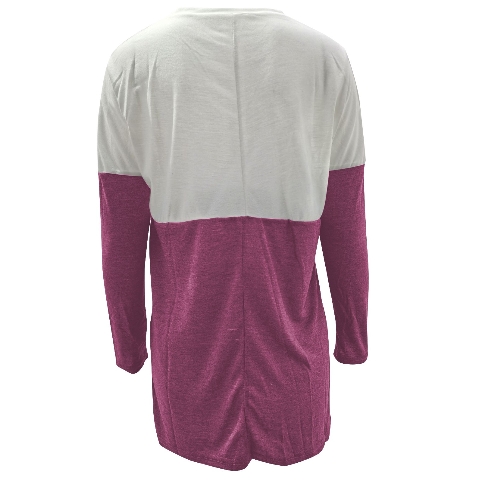 Женские модные повседневные Лоскутные свободные хлопковые топы с длинными рукавами и карманами и круглым вырезом