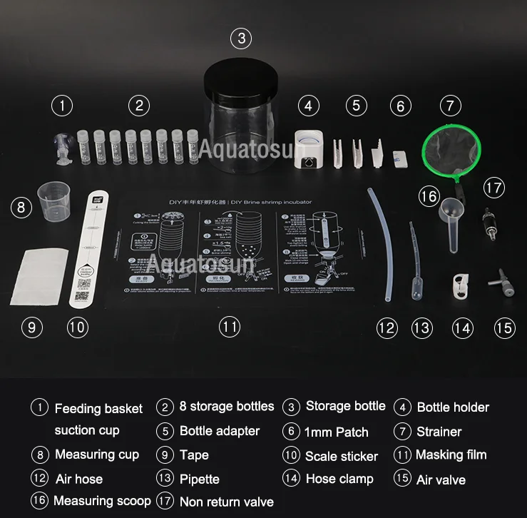1 x набор для инкубации креветок (бутылка для воды и воздушный насос в комплект не входят)