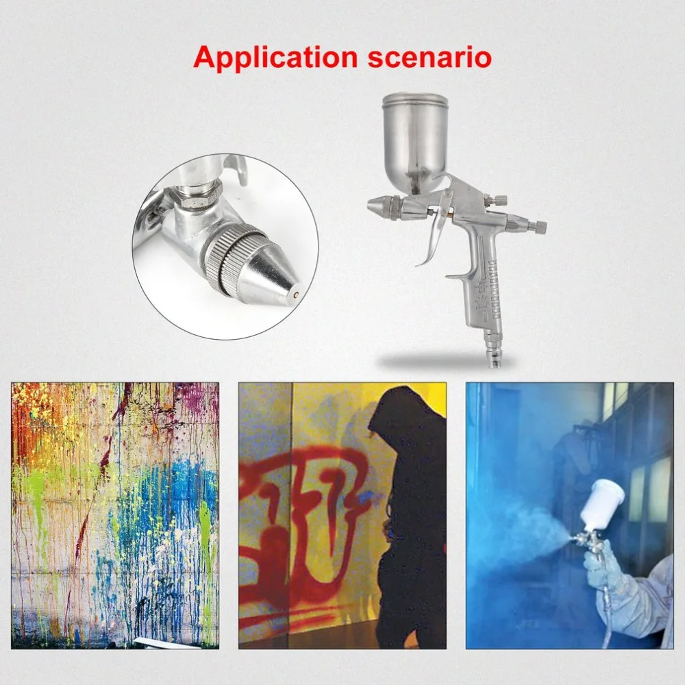 • Боковая гравитационная чашка позволяет 360? Вращение обеспечивает возможность распыления на различных углах и помогает достичь высокой эффективности передачи и превосходного распыления