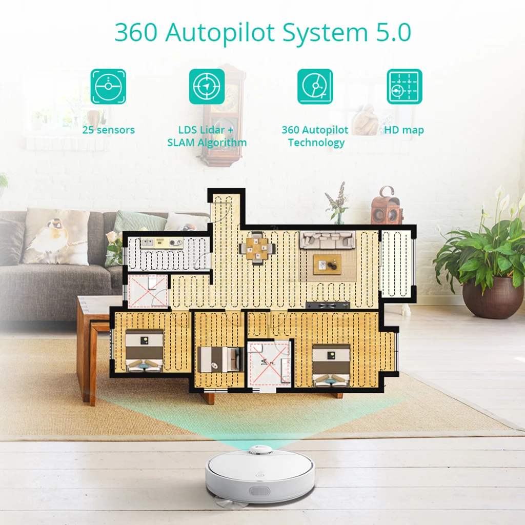 Алгоритм LDS Lidar и SLAM: Более умный и эффективный маршрут очистки, установка подметания и очистка ограниченных участков через приложение