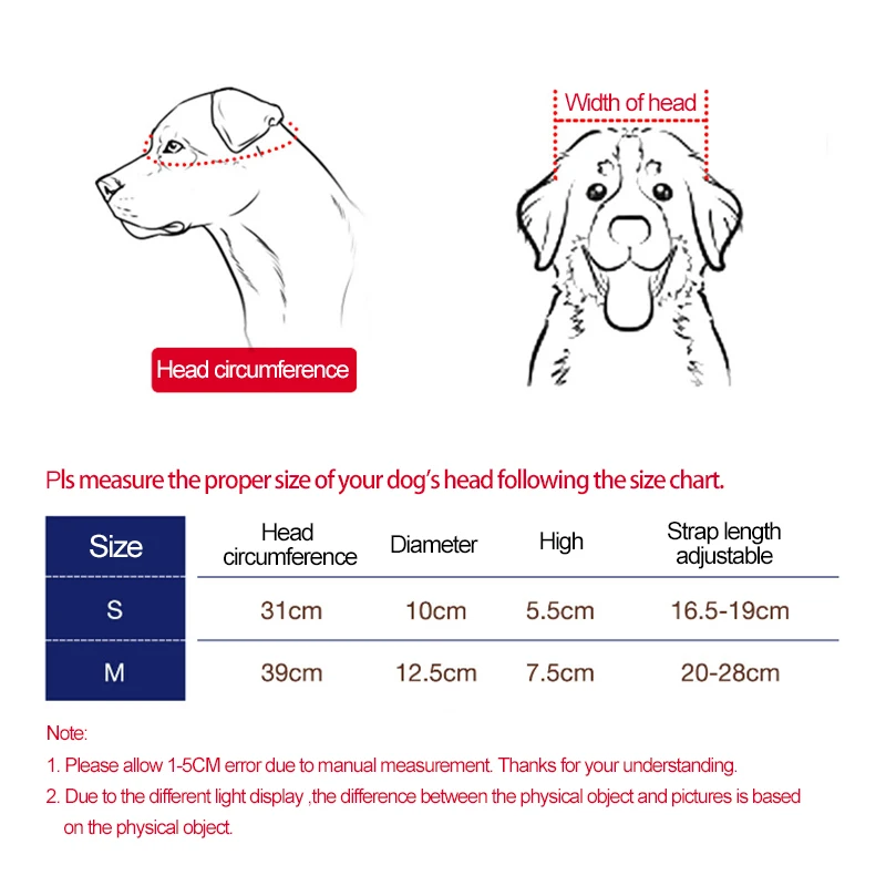 Пожалуйста, точно измерьте окружность головы вашей собаки перед покупкой