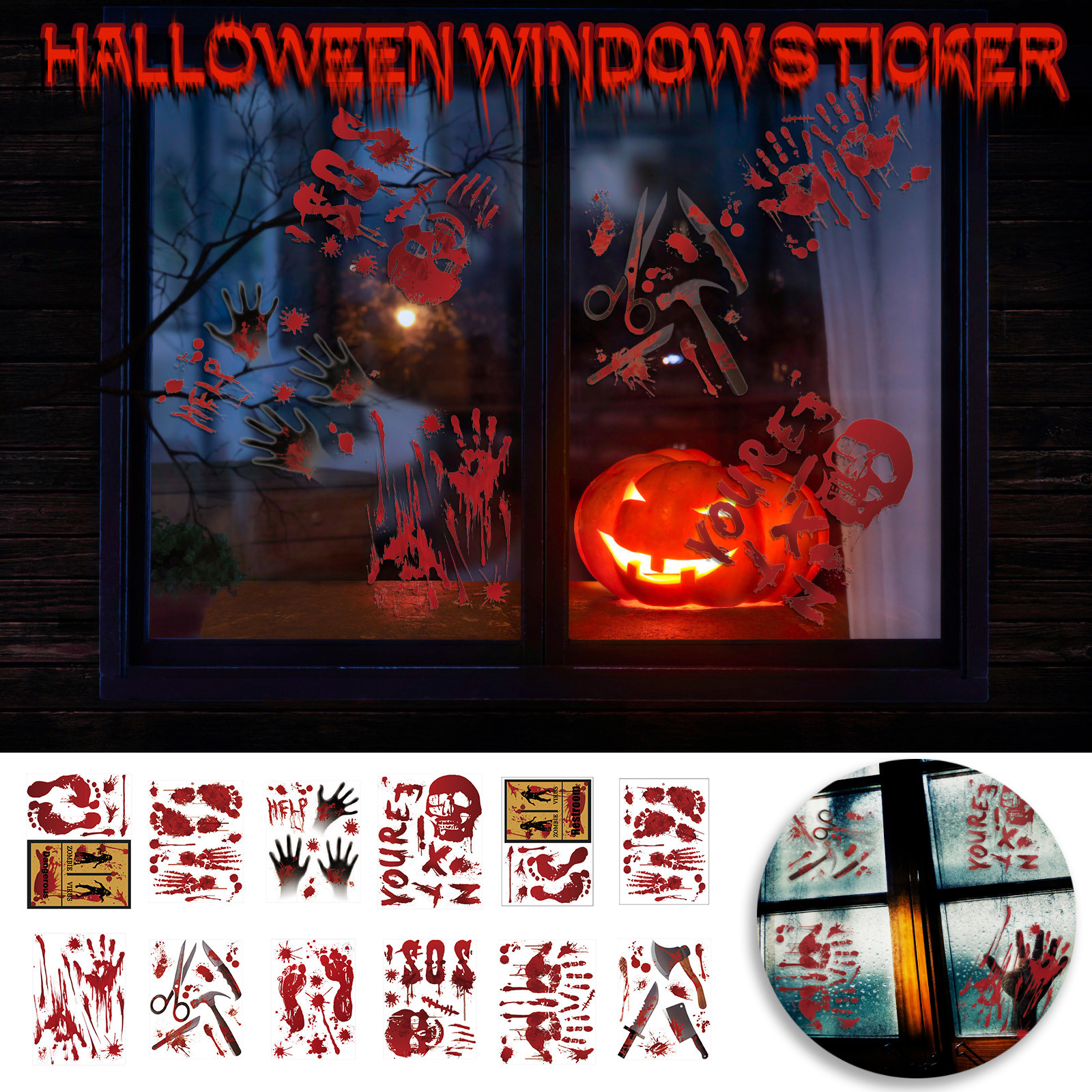 Ценная посылка: вы получите 12 листов окровавленных наклеек на Хэллоуин, разработанные в различных размерах и стилях, отлично подходят для Хэллоуина, дома, вечерние, декор для отделки пола.