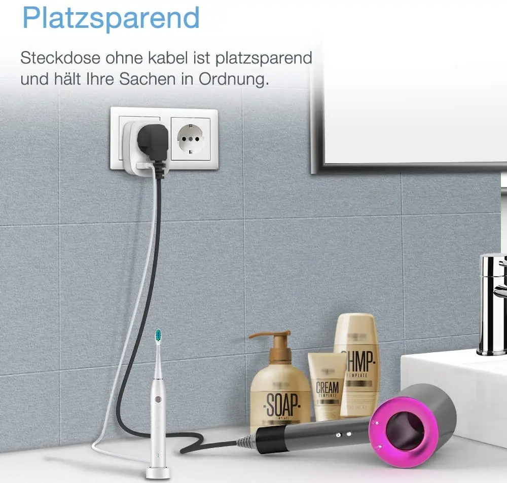Несколько настенных розеток можно использовать в любом помещении, например в спальне, ванной, кухне, офисе и т. д., несколько приборов могут работать одновременно, кабели не загромождают.
