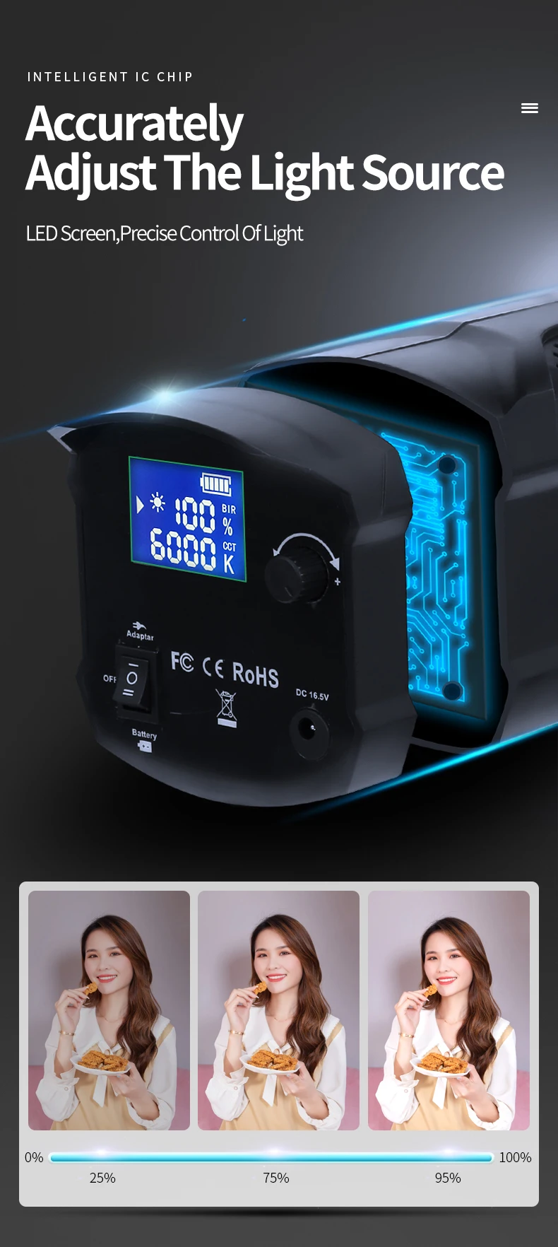 SH светодиодный видео светильник (5500K день светильник сбалансированный) для фотостудии светильник аксессуары CRI96 + TLCI 95 + Яркость
