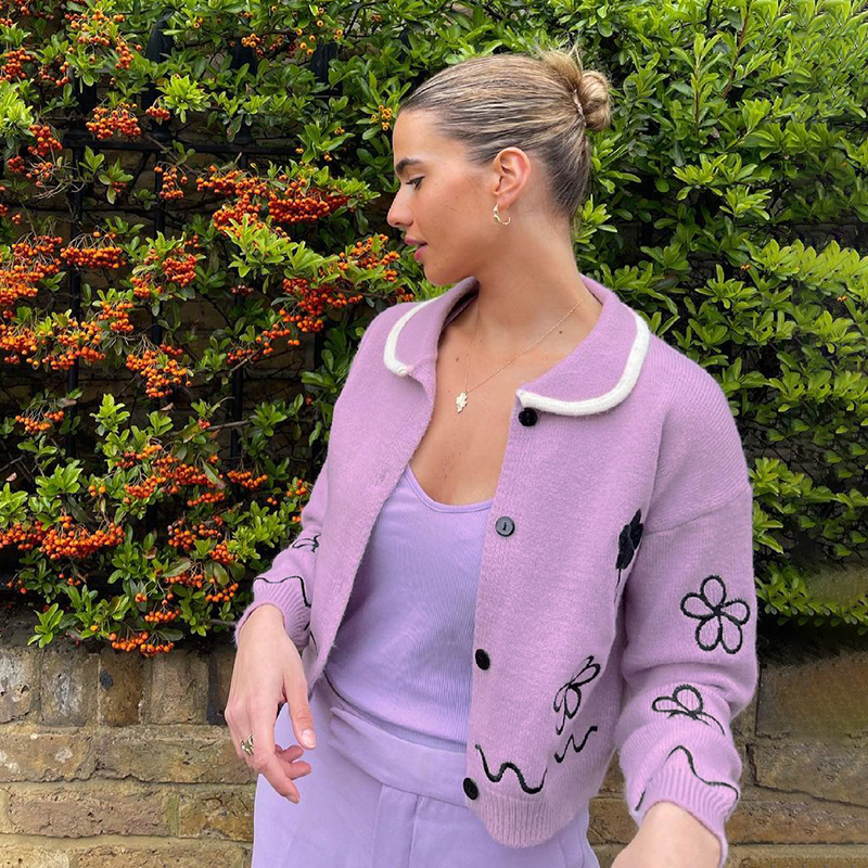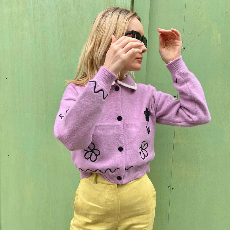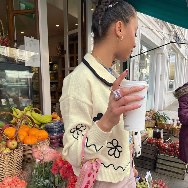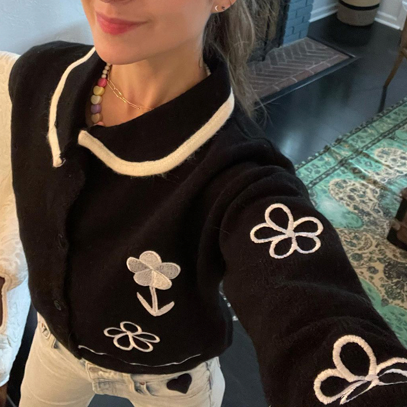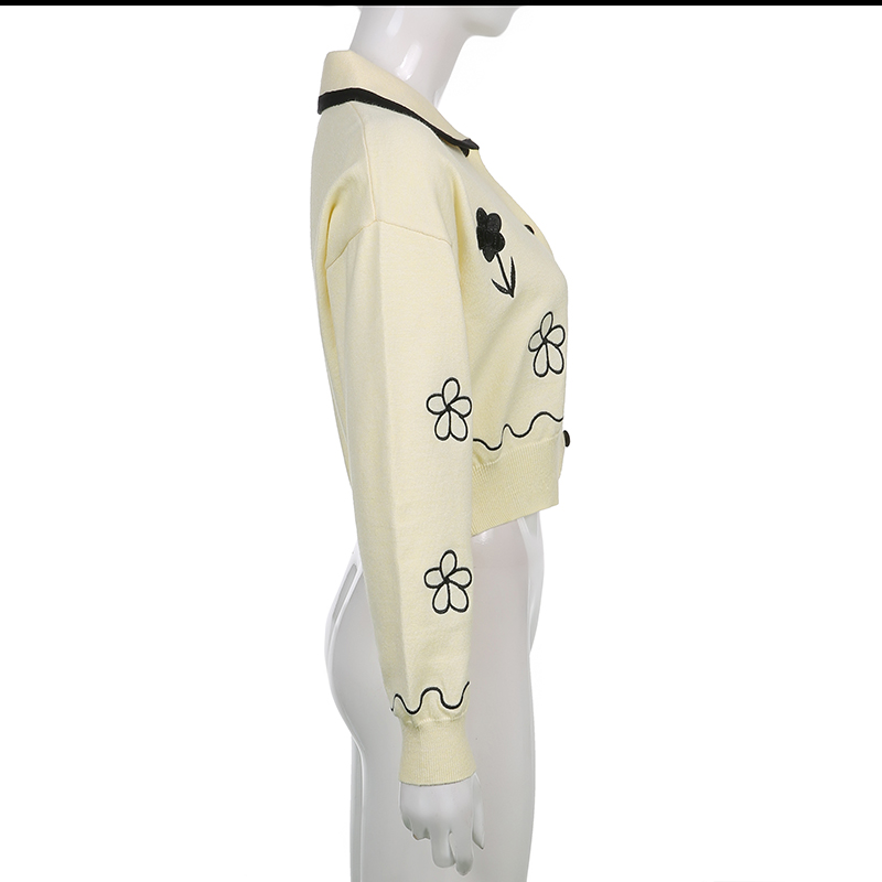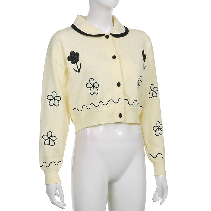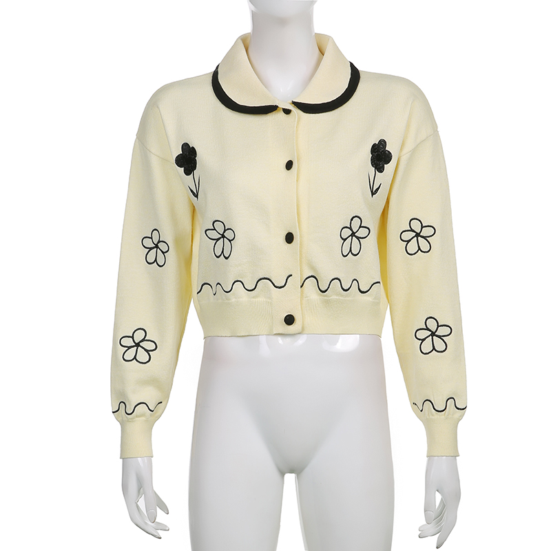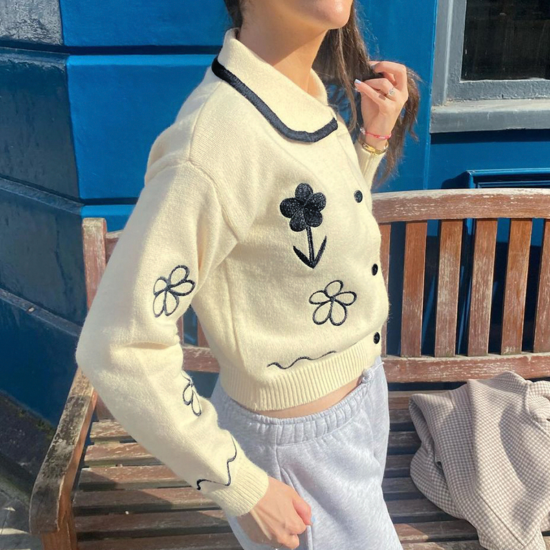 Милый вязаный свитер с цветочным узором для девочек Y2K Феи гранж однобортный кардиган с длинными рукавами 90s винтажные женские джемперы осень-зима