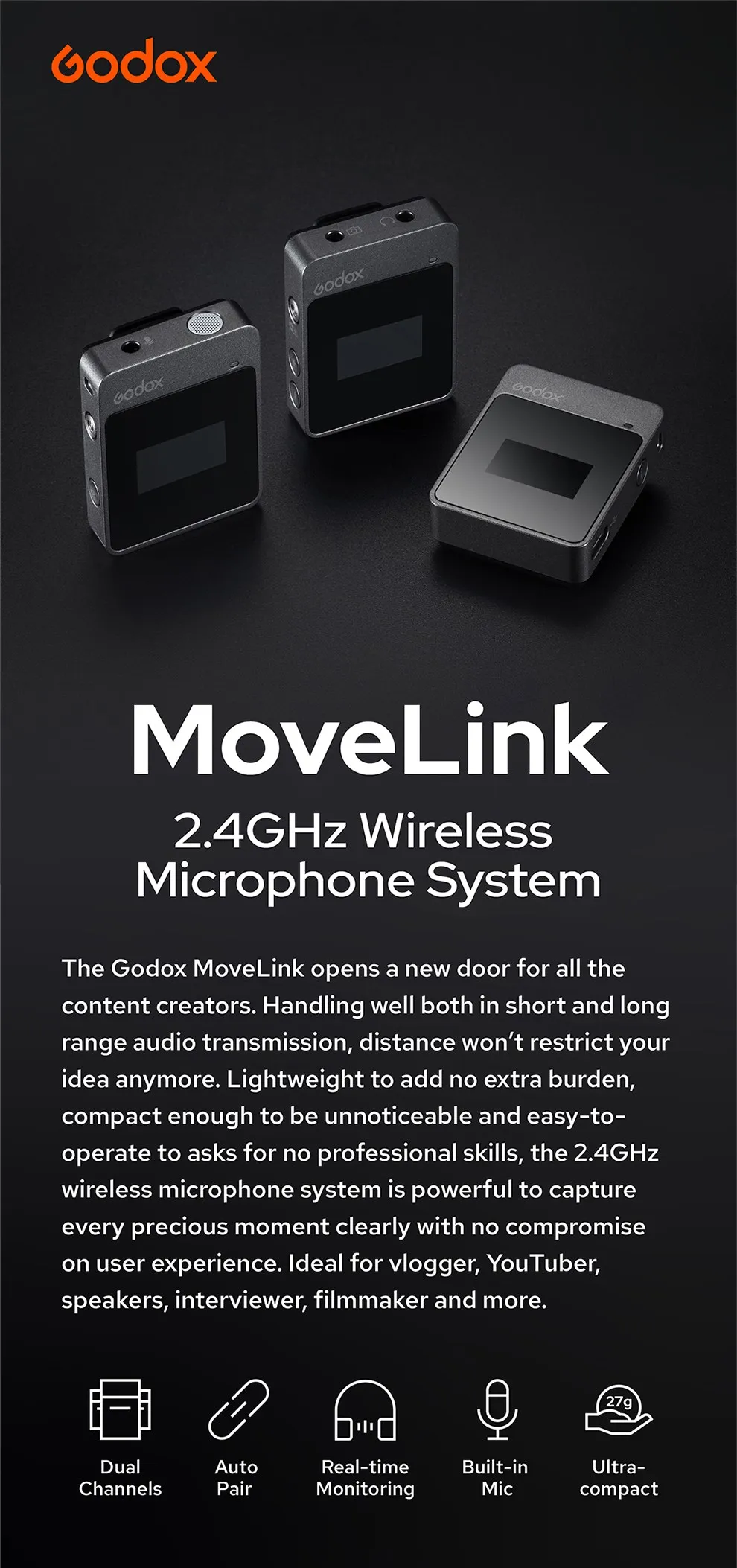3. Меньше, чем маленький: Godox MoveLink очень легкий и просто помещается в карман. Каждая единица меры в 5*4*1,4 см только для того, чтобы вы могли держать всю систему в одной руке легко.