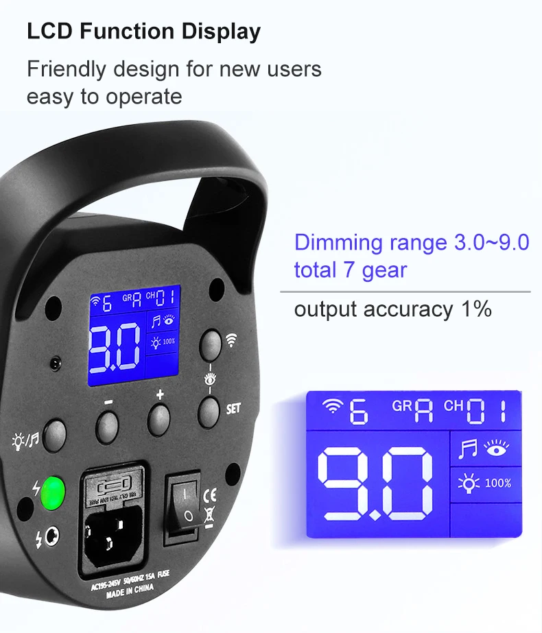 Стандартный список: 1 * студийная вспышка DMII + пластиковая защита * 1 + кабель питания * 1