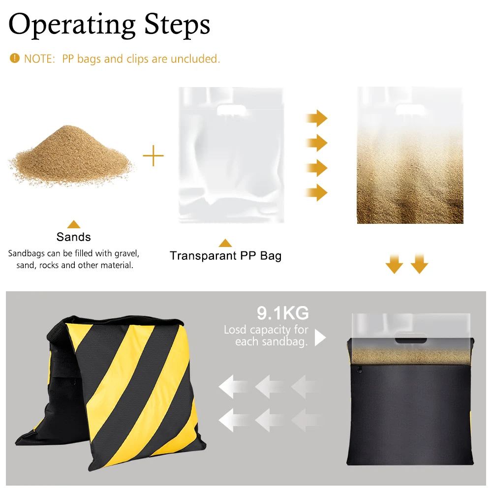 SH Black Yellow Photography Sandbags Big Sand Bag For Background Backdrop Stand C-stand Boom Arm Cantilever Light Tripod