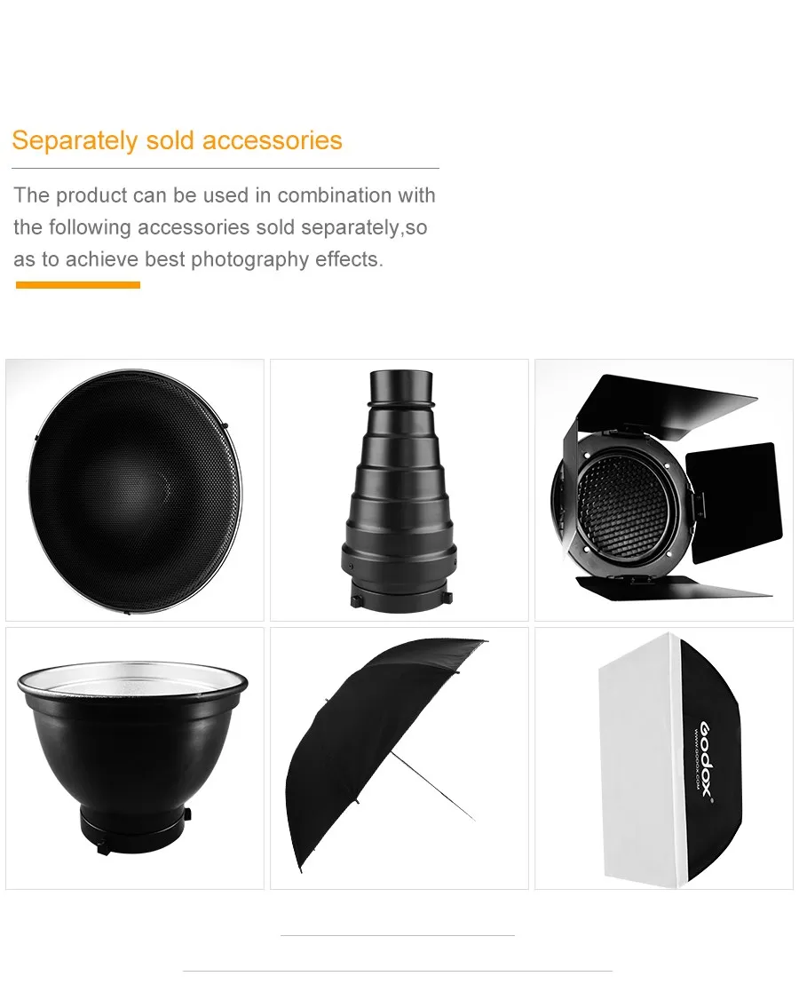 Модель: 200 см светильник StnadОсобенностиКонструкция из алюминиевого сплава.Красивый черныйПрочные быстросъемные рычаги.Универсальный и компактный для легкой настройки.Длина в сложенном виде: 67 смМинимальная длина: 2'4 " (70 см).Максимальная высота 7 ' (200 см).Идеальная Максимальная рабочая высота: (140 ~ 150 см) Модель: Godox FS50X70CM сотовая софтбокс с решеткойПараметрыРазмер: 50X70 см/20 "x 27" софтбоксКрепление: Универсальное креплениеДиаметр крепления: 10 см/3,9 "(только подходит головка вспышки Диаметр от 7 см до 10 см)Модель: Godox AT-16Технические характеристикиСистема передачи: 433 МГцКанал: 16Передатчик Мощность: 23A 12V батарея (установлен)Приемник Мощность: AC100-240V 50/60HzКабель синхронизации: Ø6.35/Ø3.5Синхронизации: 1/200sРабочее расстояние: на открытом воздухе до 30 м; В помещении до 20 м Комплект 1 посылка в комплекте:1 x студийная вспышка E300Модельная лампа-1 шт.1 х шнур питанияРуководство по эксплуатации-1 шт. Комплект 2 посылка в комплекте:1 x студийная вспышка E300Модельная лампа-1 шт.1 х шнур питанияРуководство по эксплуатации-1 шт.1 x FS50X70cm сотовый софтбокс Комплект 3 посылка в комплекте:1 x студийная вспышка E300Модельная лампа-1 шт.1 х шнур питанияРуководство по эксплуатации-1 шт.1 x FS50X70cm сотовый софтбоксТриггер Godox AT-16-1 шт. Комплект 4 посылка в комплекте:1 x студийная вспышка E300Модельная лампа-1 шт.1 х шнур питанияРуководство по эксплуатации-1 шт.1 x подставка для светильник 180 см Комплект 5 посылка в комплекте:1 x студийная вспышка E300Модельная лампа-1 шт.1 х шнур питанияРуководство по эксплуатации-1 шт.1 x подставка для светильник 180 см1 x Godox AT = 16 триггеров Комплект 6 посылка в комплекте:1 x студийная вспышка E300Модельная лампа-1 шт.1 х шнур питанияРуководство по эксплуатации-1 шт.1 x подставка для светильник 180 см1 x Godox AT = 16 триггеров1 x FS50X70cm сотовая софтбокс с решеткой