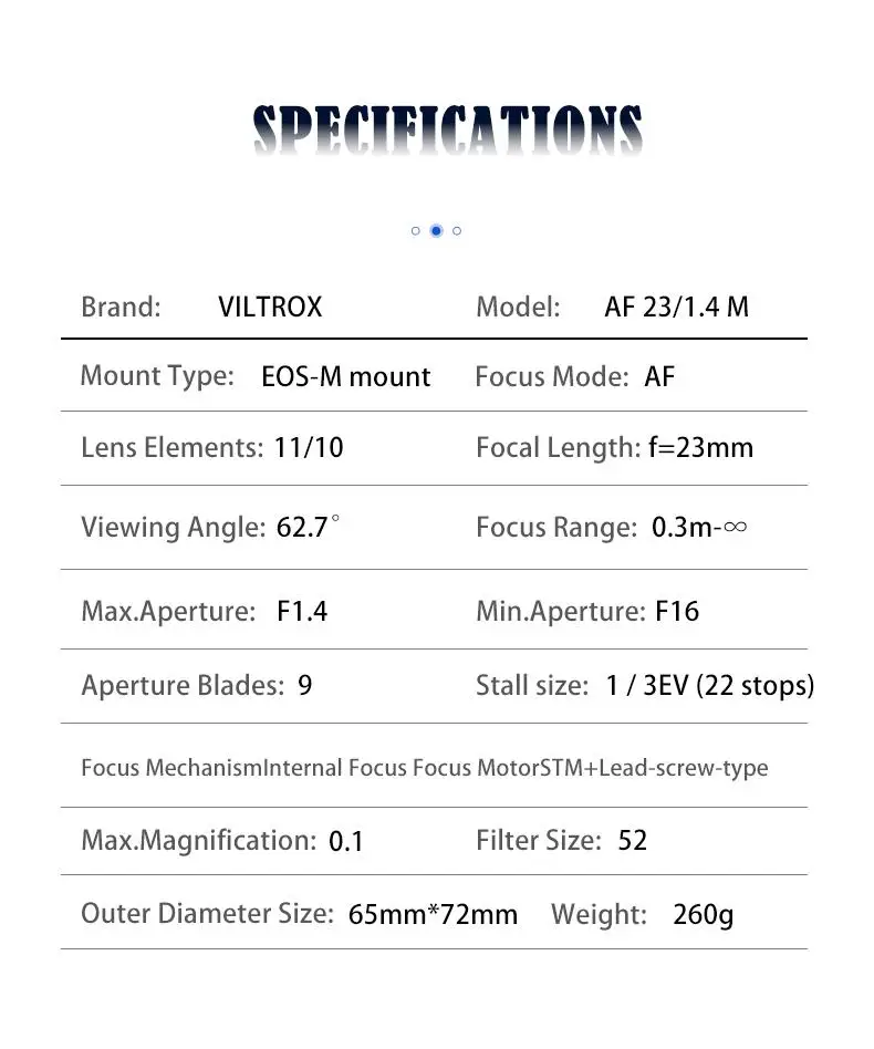 · Полная рама, фокусное расстояние 23 мм или 33 мм или 56 мм, Большая диафрагма F1.4.