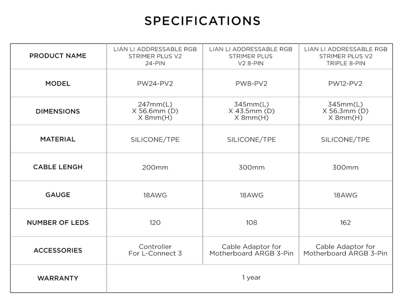 Название продукта: Lian Li ion аккумулятор адресуемых RGB стример плюс V2 Тройной 8-Pin