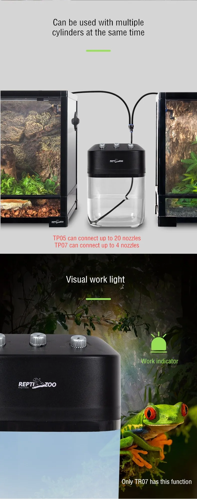 【Timed Spray Function & Adjustable Rainfall System】With built-in timer, the product can imitate the natural environment and regularly spray water onto your pets or rainforest landscapes. And the sprayer can adjust the spray flow to to fully simulate the natural rainforest environment.