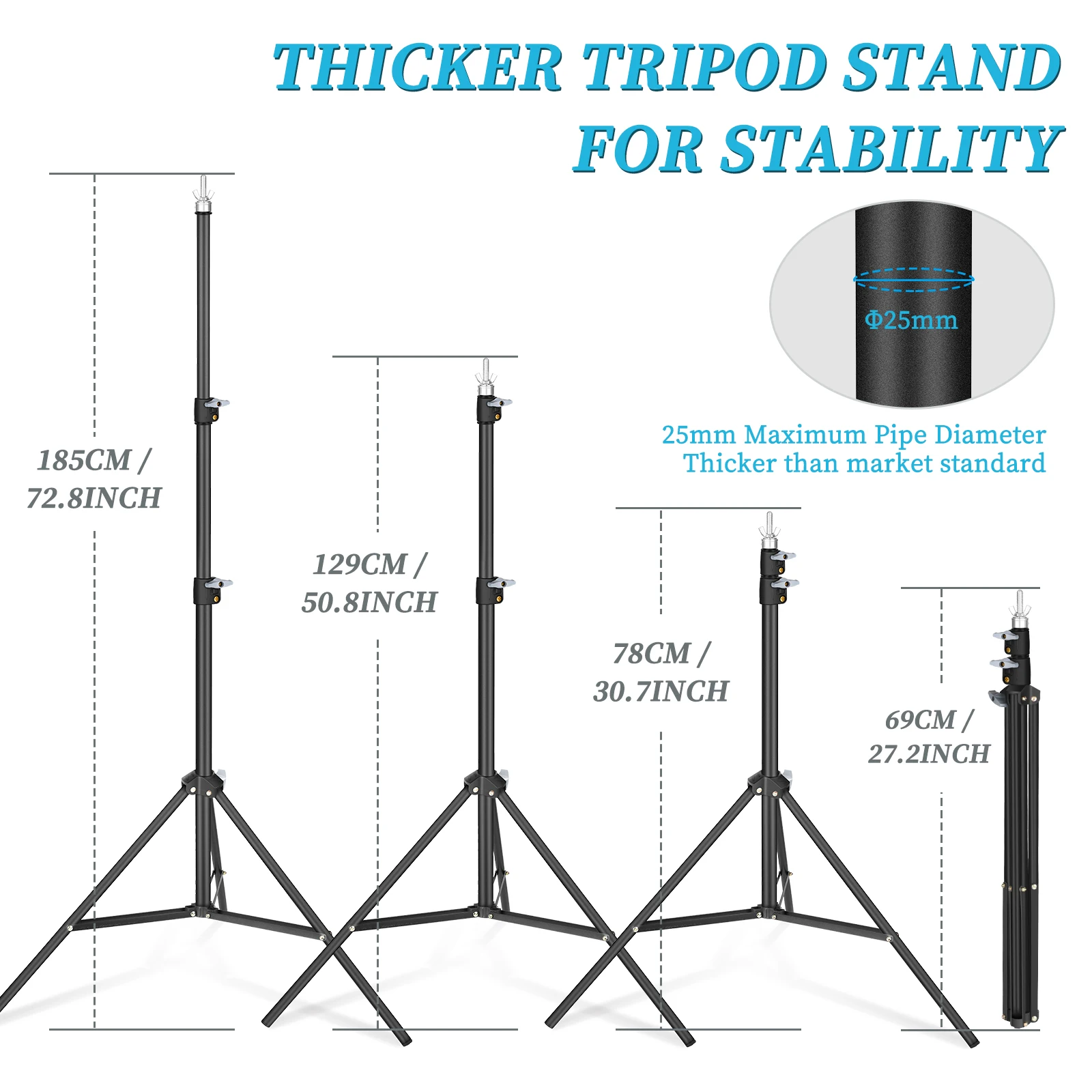 Штатив-светильник: Изготовлен из алюминиевого сплава, регулируемая высота (мин 79cm-макс 200 см), стабильный и прочный.