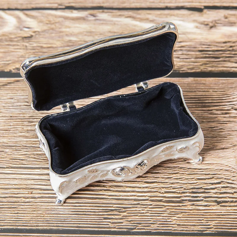 3 размера металлическая коробка для ювелирных изделий Белая эмалированная коробка для безделушек цветок резная Подарочная коробка ожерелье браслет кольца аксессуар чехол для хранения Материал: цинковый сплав Размер: S-10,8x5,5x4,5 см М-12,6x6,5x5,5 см L-18,5x9,5x8 см
