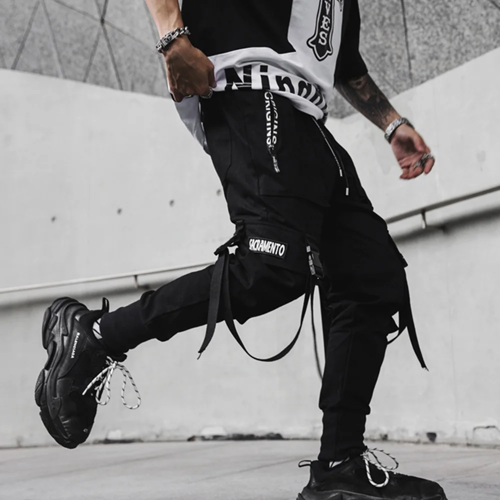 Мужские черные шаровары в стиле хип-хоп, уличная одежда с несколькими карманами, мужские спортивные штаны, уличная одежда, повседневные мужские штаны в стиле хип-хоп, M-2XL