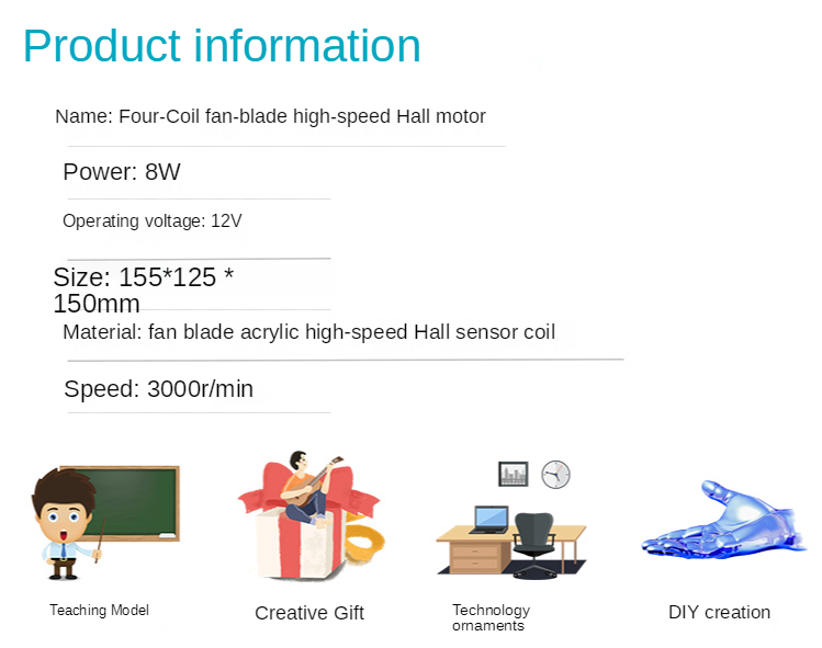 Название: четырехкатушечный вентилятор-лезвие высокоскоростной мотор Холла мощность: 8 Вт