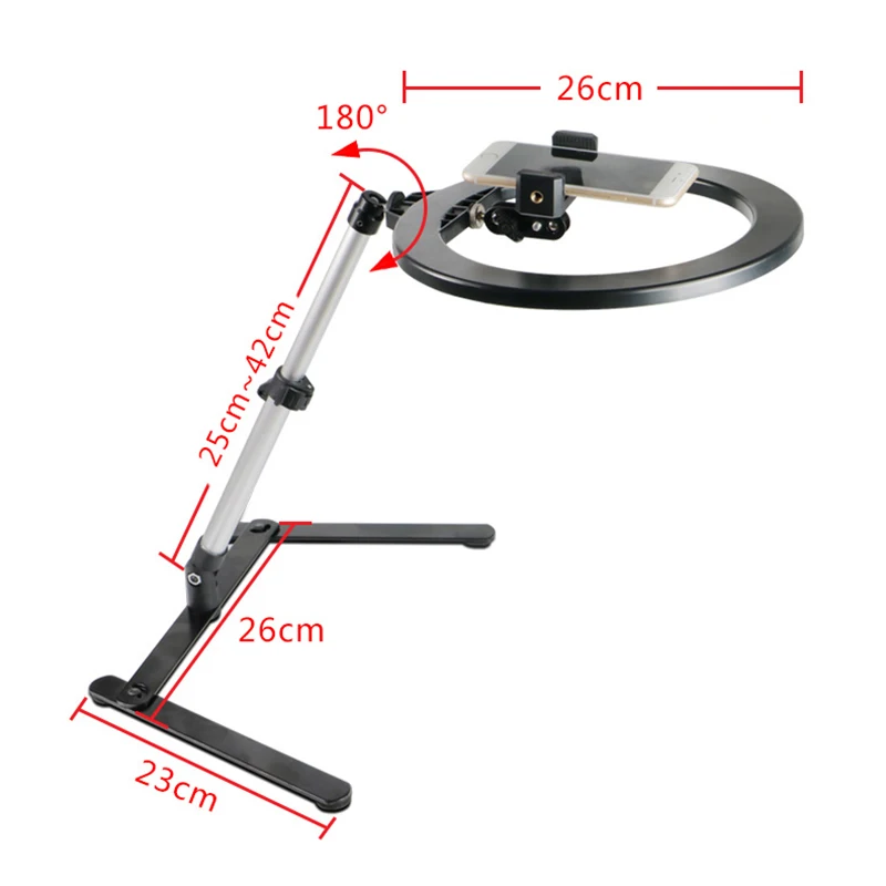 26 см светодиодный светильник-кольцо со штативом, селфи-палка, зажим для телефона, для селфи, студии, фото, видео, трансляции, живой макияж, кольцо, заполняющая лампа