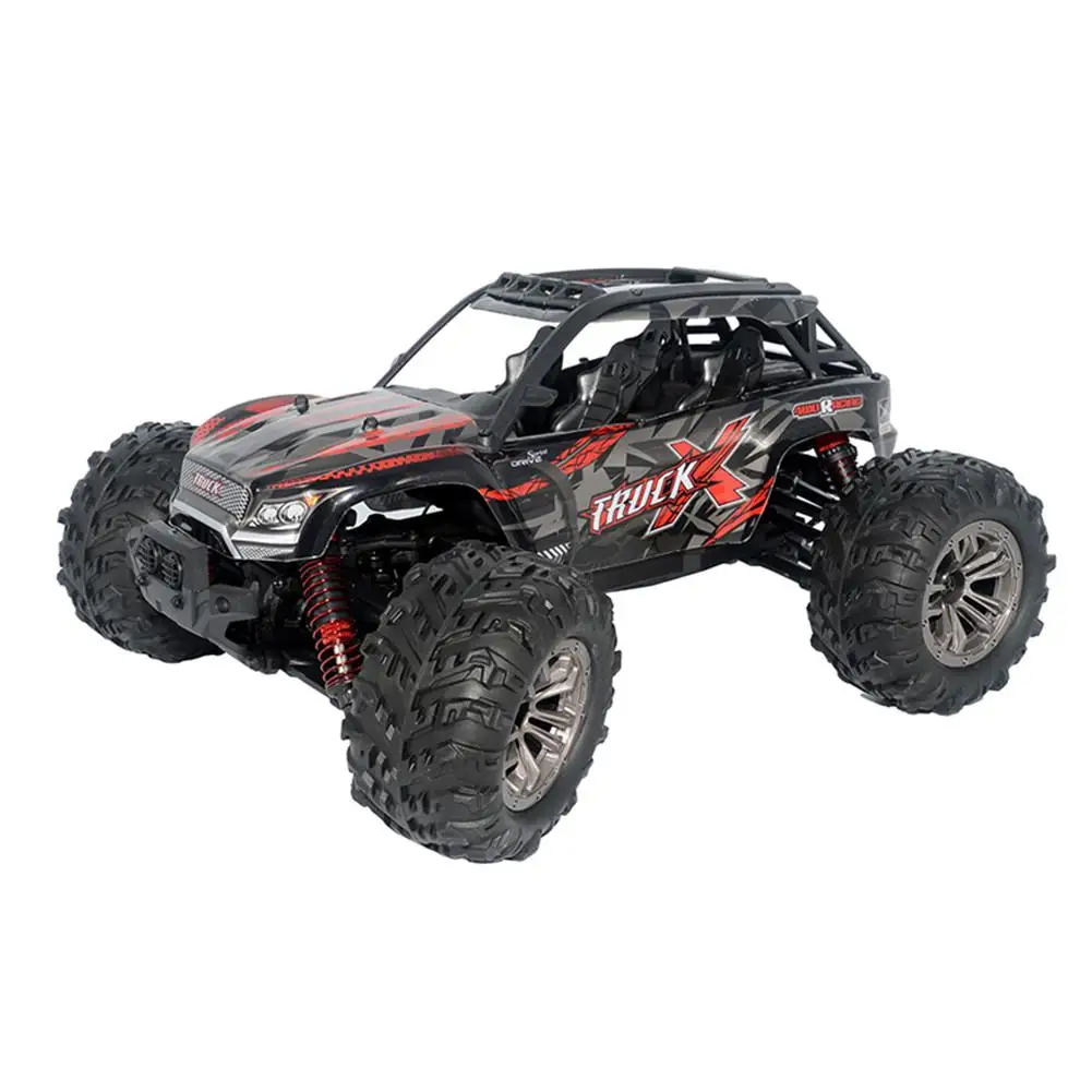[Щеточный двигатель и более мощный] -- с начесом мощного встроенного двигателя, максимальная скорость до 36 км/ч, этот скоростной трюк RC cross countryvehicle принесет вам большой опыт скорости. Резиновые колеса из ПВХ мягкие, эластичные, противоударные и противоскользящие. Четыре подвески и пружины, ударопрочная система и лучшая защита электронных компонентов.