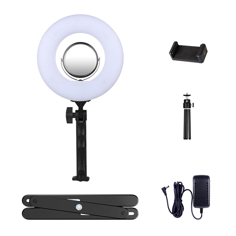 8-дюймовая настольная кольцевая лампа 5500K, бесступенчатый светодиодный светильник для макияжа, кольцо для селфи, заполняющий светильник, зеркальный светильник, подставка для фото, Tiktok Video