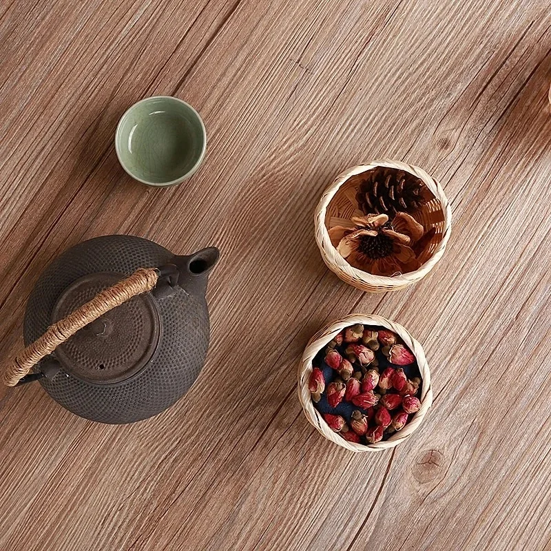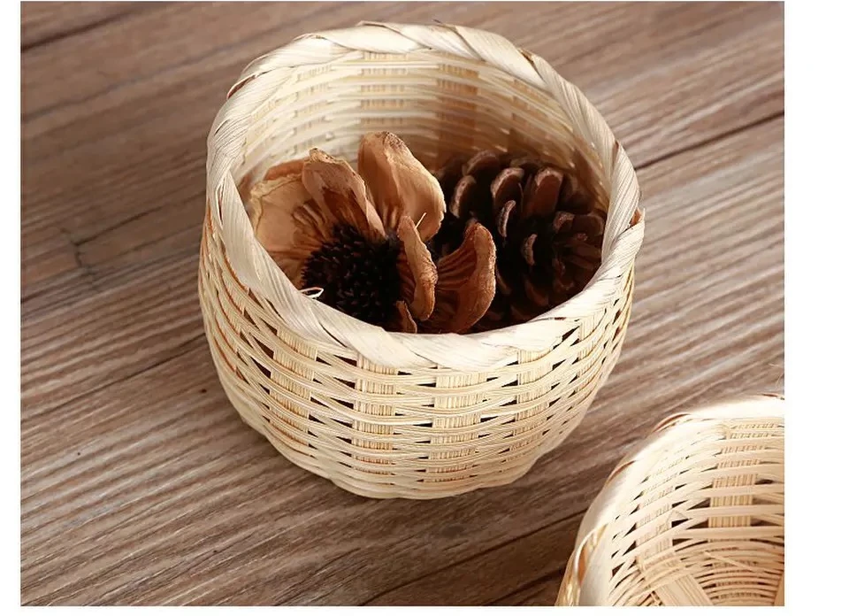 Bamboo small tea set manual storage basket simple Chinese tea set sundry snacks storage basket daily home decoration supplies