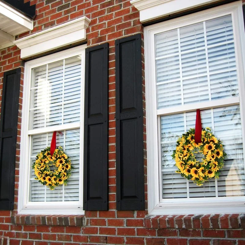 Искусственный венок из подсолнухов ручной работы изготовлен на устойчивой основе из веточек с искусственными подсолнухами, цветущими подсолнухами и листьями, долговечный мягкий и податливый и выглядит очень реалистично. Он идеально подходит для вашей передней двери, над мантелями, на стенах для всех ваших весенних и летних украшений.